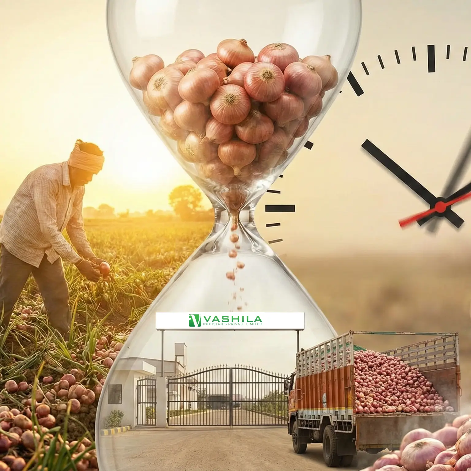 Our process starts right at the farm gate. Situated in Nadiad, Vashila Industries is strategically located to source the best crops from Gujarat’s premium onion belts, specifically the Mahuva and Bhavnagar districts.